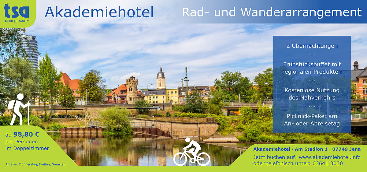 Lernen Sie Jena kennen! Entdecken Sie die Stadt und welche Rad- und Wandermöglichkeiten es in der Region gibt, erfahren Sie hier.